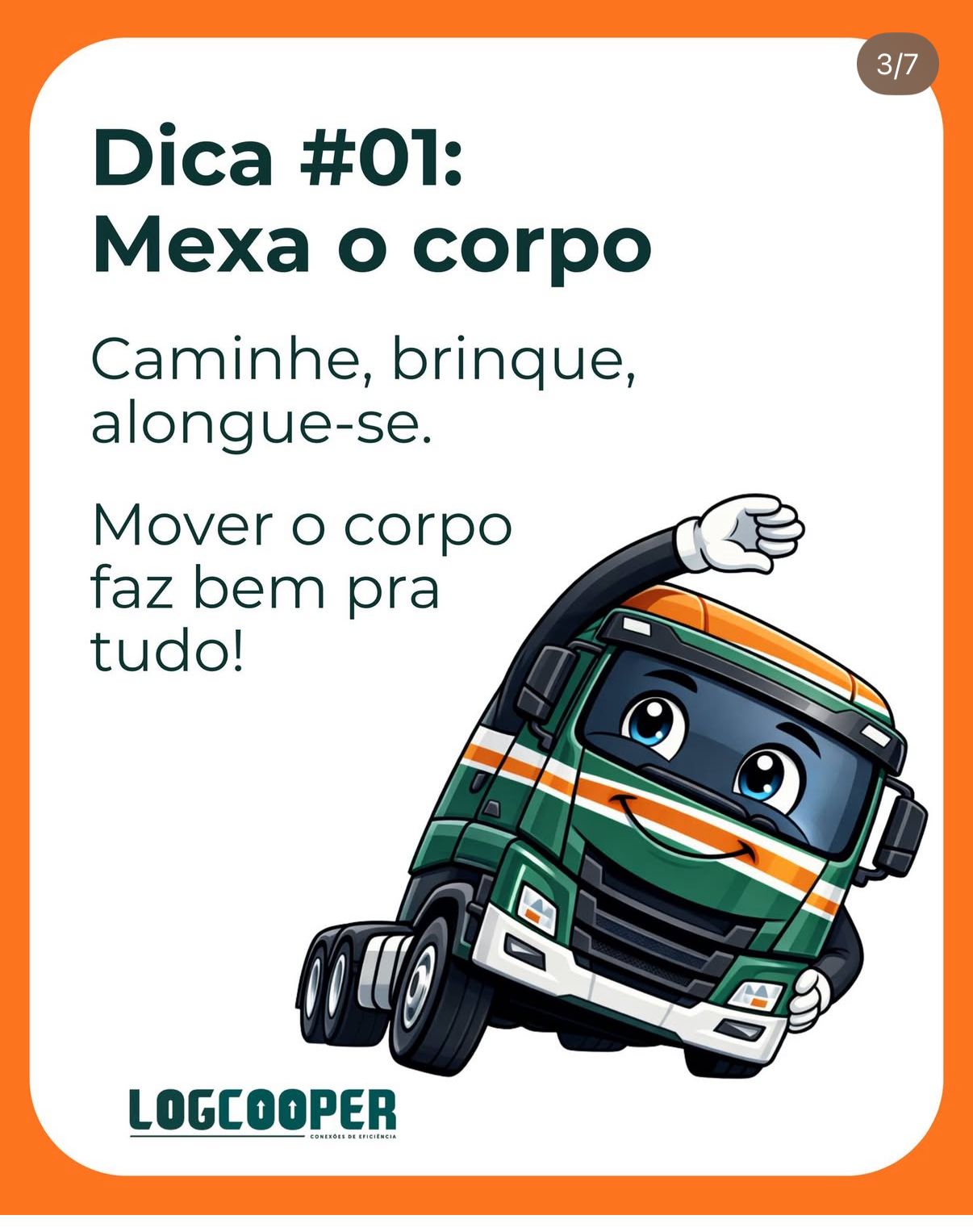 Arrasta para o lado e dá uma olhada que os nossos caminhões lembram de algo simples, mas essencial: cuidar da saúde também faz parte da profissão.